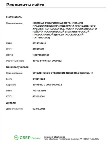 Православный Приход храма преподобного Арсения Коневского д. Коськи Рославльского района Рославльской Епархии Русской Православной Церкви (Московский Патриархат)
